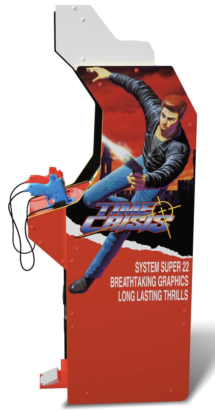 • 🔫 Authentic Controls: Features two guns with mechanical slide action and a single-action foot pedal (for TIME CRISIS), delivering an authentic arcade feel.