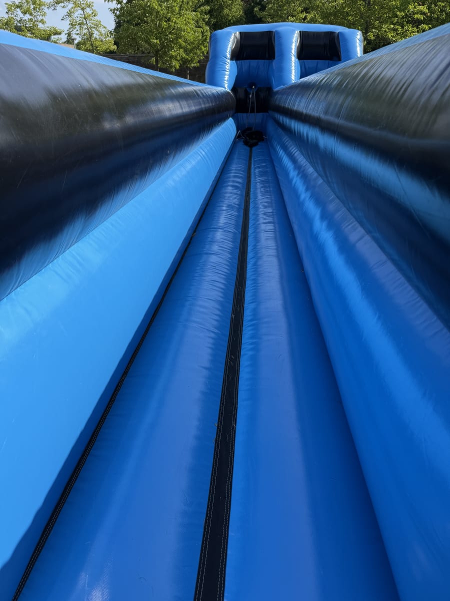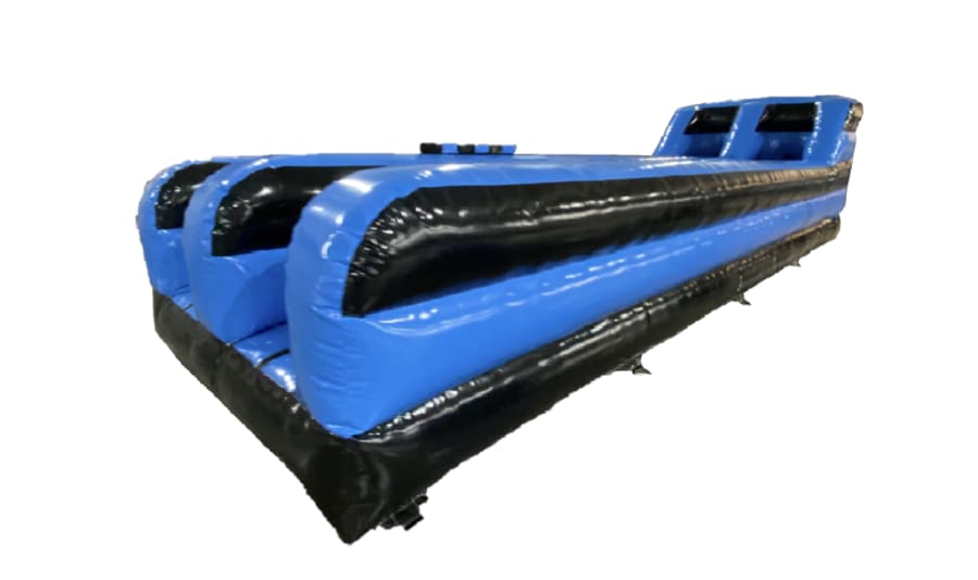 The Inflatable Bungee Run is a 35.4 ft long inflatable track where two participants compete against each other. Each player is harnessed to a bungee cord, and the goal is to run as fast as possible and place their marker as far down the track as they can before the bungee cord pulls them back. It's an exhilarating challenge that will test your speed, agility, and determination.