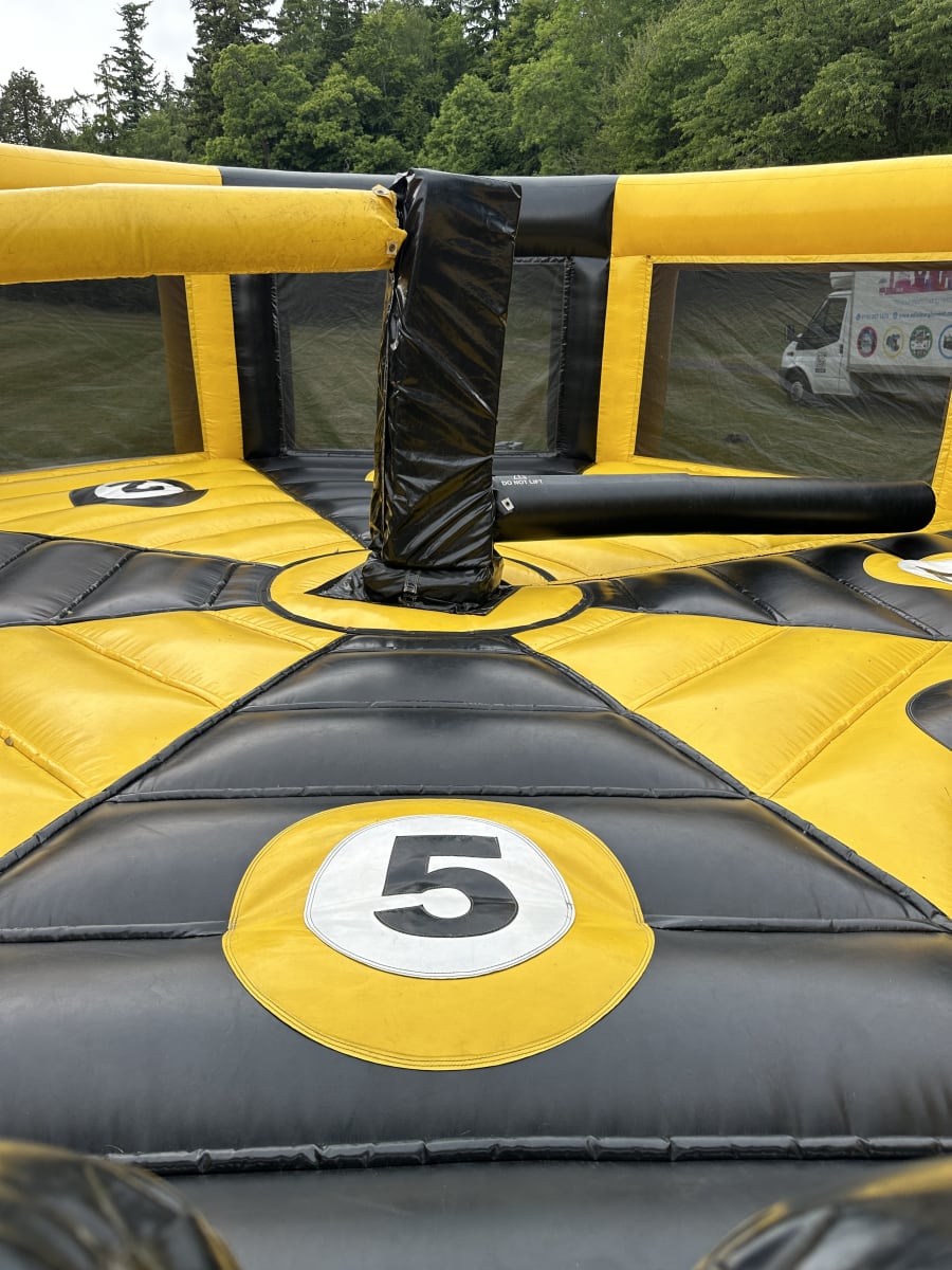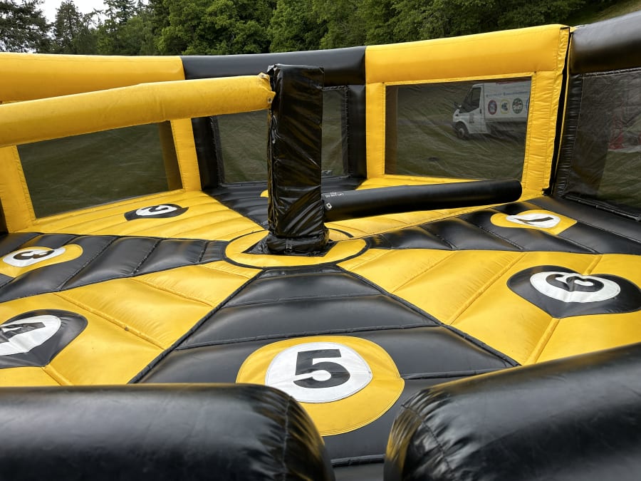 You’ve seen it on BBC’s Total Wipeout, now you can try this test of skill and timing for yourself as the swinging arm swirls around menacingly trying to chop you down. All you have to do is time your jump to stay alive longer than anyone else. Land safely back on your podium, and you live to fight another round. But watch out; the swinging arm will soon be coming around again!