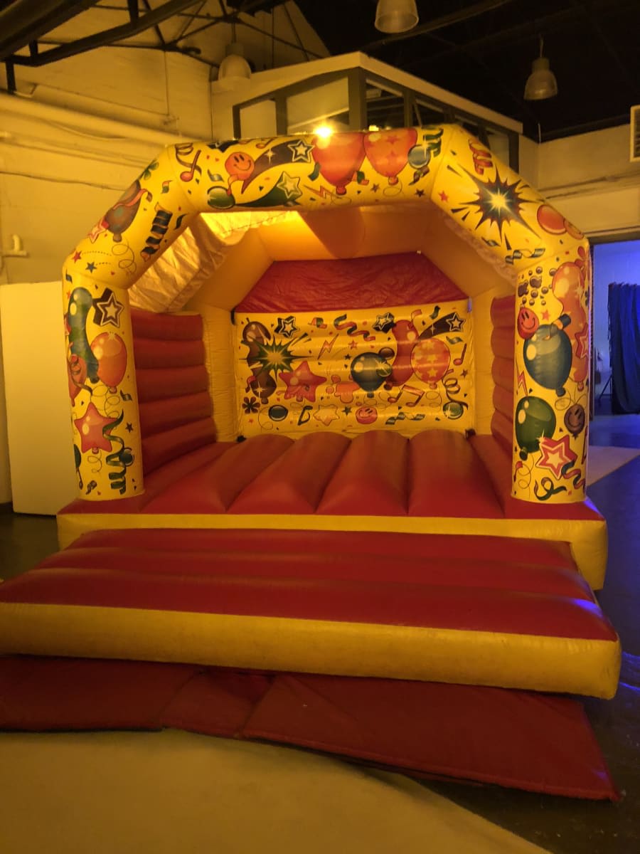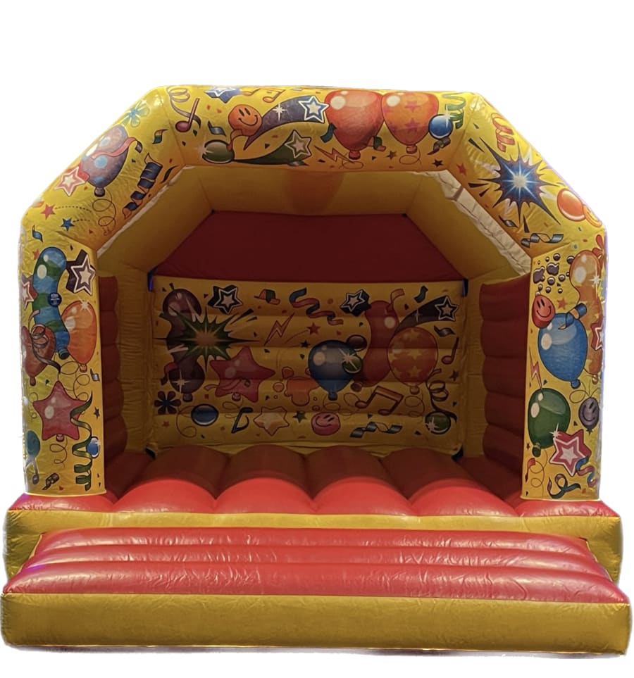 Unlike some bouncy castles that are only decorated around the entrance, the fun continues on this stunning centrepiece right through to the back wall. The whole thing is covered with balloons and streamers, sparkles and stars, on a gorgeous yellow background with pink walls and bouncing base. It’s one of our brightest bouncy castles for hire and will appeal to boys and girls of all ages.