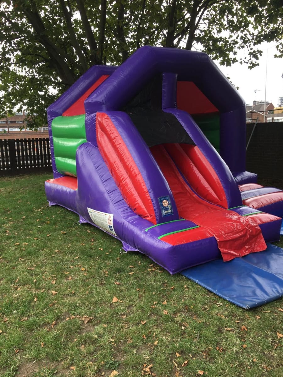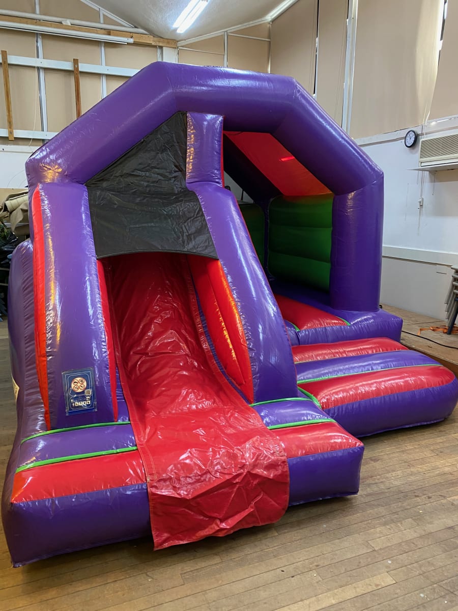 This front slide combo bouncy castle, available for hire in Edinburgh and the surrounding towns, can take kids aged up to 14, so it’s great for mixed groups. It measures 12ft by 18ft, so there’s loads of room to play, and at just 11ft high, you can use it indoors as well as out for year-round celebrations.