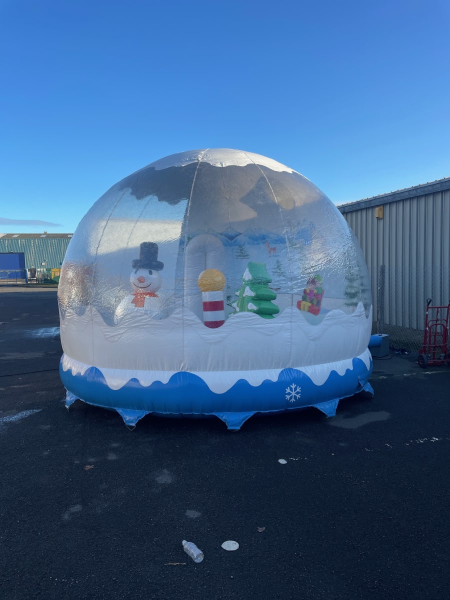 Inflatable Christmas snow globe for hire in Edinburgh Move the snow globe off the shelf and into your party with this amazing festive inflatable Be part of the decorations Why just look at the fantastic festive decorations this Christmas, when with this incredible inflatable snow globe for hire in Edinburgh and the surrounding towns, you could be a part of them with your friends, family or work colleagues! It’s a unique addition to the Christmas display for any company, shopping centre, school or festive fair and a huge hit at Christmas parties. Festive photo op This giant-sized snow globe for hire is big enough for the whole family to enjoy, so everyone can climb in and pose for a memorable picture to send to their friends and family with their Christmas card. Hire a photographer for your event and you can make even more money for your cause or add value to the treat for your team. Bouncy castle fun Step in through the back wall and you’ll discover a winter wonderland waiting inside, complete with inflatables of a Christmas tree, a snowman and even the North Pole. It’s all arranged on a snow-white bouncy castle base, with a snowscape across the back wall, all designed to get everyone in the mood for some festive fun as they bounce about. More Christmas treats Whether you are trying to draw in the Christmas shoppers, trying to add some magic to your company Christmas party or just you just want to add some silliness to the festive season, Edinburgh Events have loads of great ideas to help you celebrate. You can hire everything from party games to funky disco bouncy castles, from giant light up Santas to classy frozen cocktails, with amazing value package deals available. Talk to our team for ideas and inspiration for your event today. Book now With so few dates available in the run up to Christmas, you need to book as early as possible to avoid disappointment. Click below to see if your date is free and if it is, book it now!