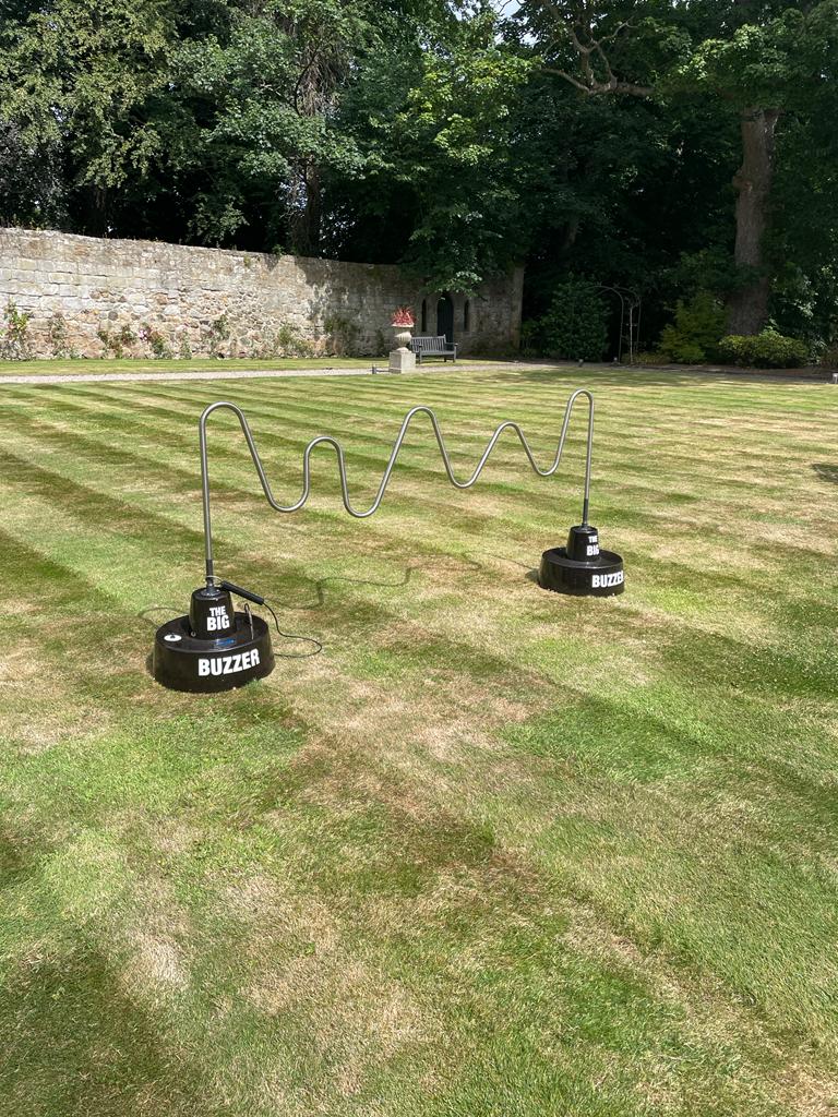 You know the fairground hook and wire game, where you have to get the loop all the way around the twisty wire without touching it and setting off the alarm? Well, we’ve made it massive, with a wire that’s around ten feet long! But that doesn’t make it any easier – if anything, having to move along as you twist and turn the loop only makes it harder to beat the buzzer.