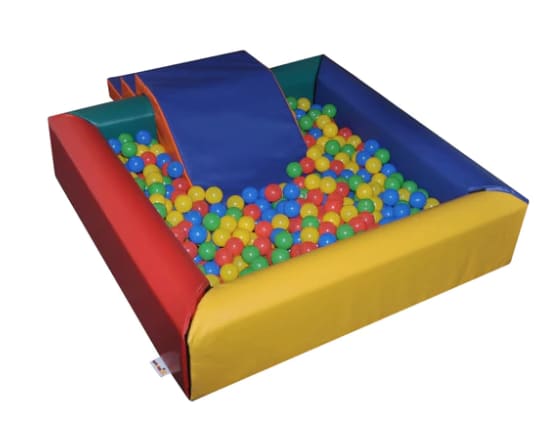 Our Soft Play Package - Bronze includes a ball pool filled with 300 pretty coloured balls. Watch as your little ones dive into the pool, immerse themselves in the soft balls, and have a blast sliding and playing. The ball pool has dimensions of 1.2m width and 1.2m length, providing ample space for your children to explore. The ball pool also comes with 2matts.