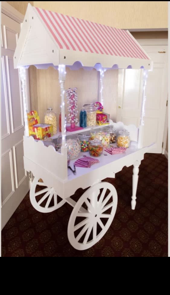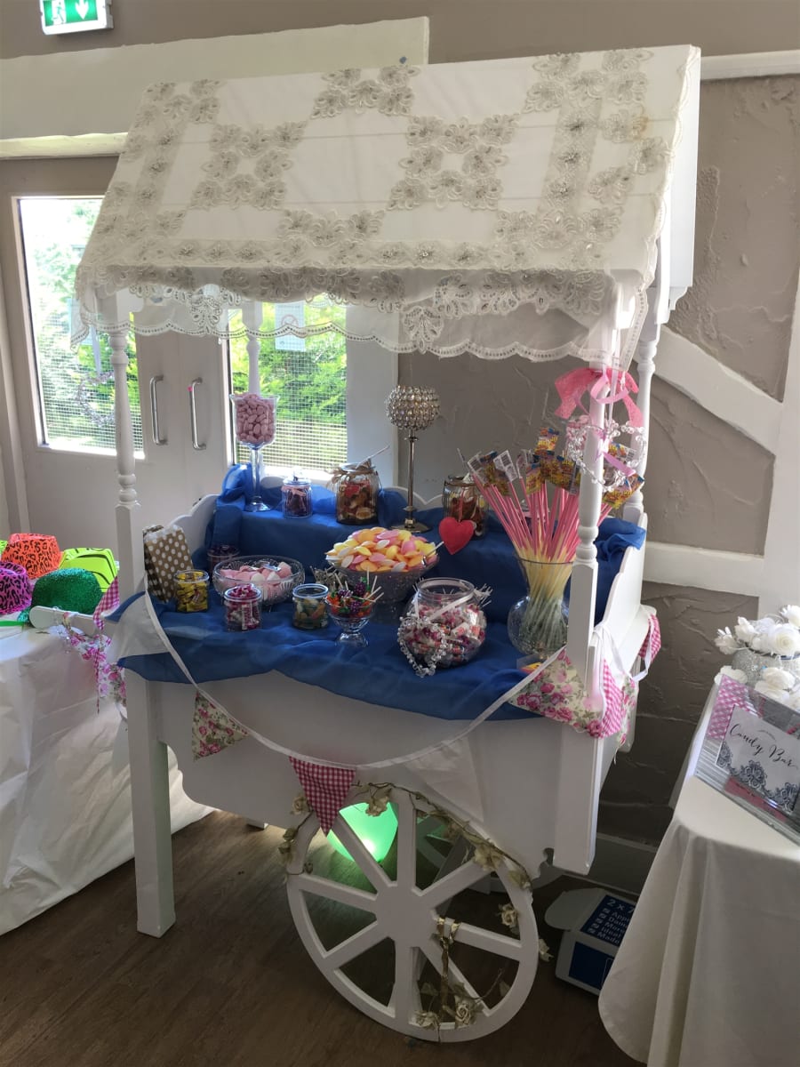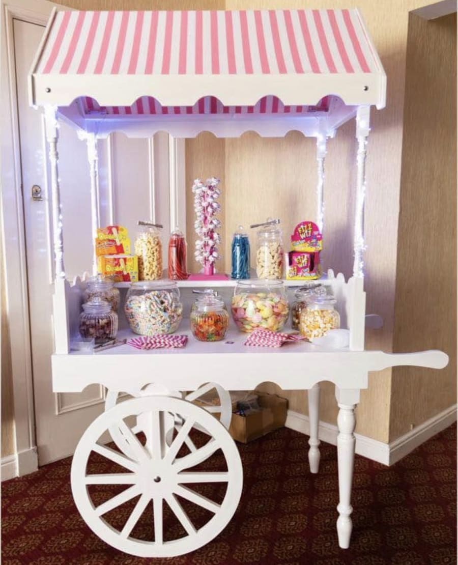 Our luxury vintage sweet cart is elegantly adorned with: